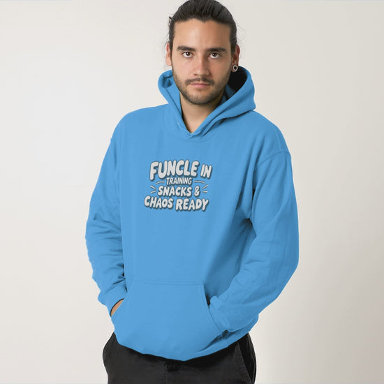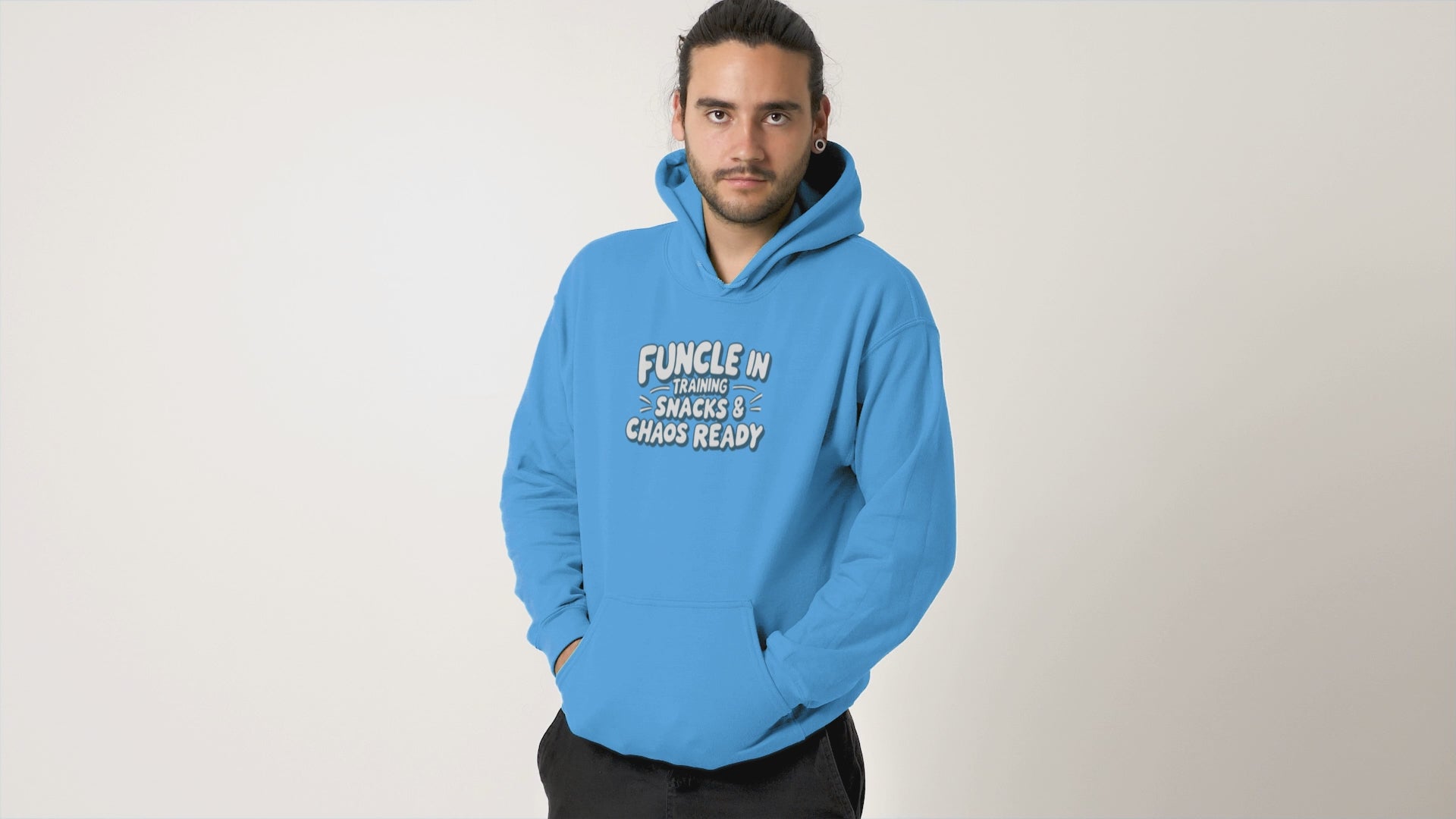 This 'funkle AKA the fun uncle in training' hoodie is perfect for those who want to show off their fun uncle status in style. The cozy feel and warmth of this hoodie make it ideal for casual wear or lounging around. Great for adults looking for a comfortable yet stylish option to stay warm during colder months, or as a fun gift for the uncle figure in your life. Perfect for holidays like Christmas, birthdays, or just to show appreciation to the fun uncle in your family.