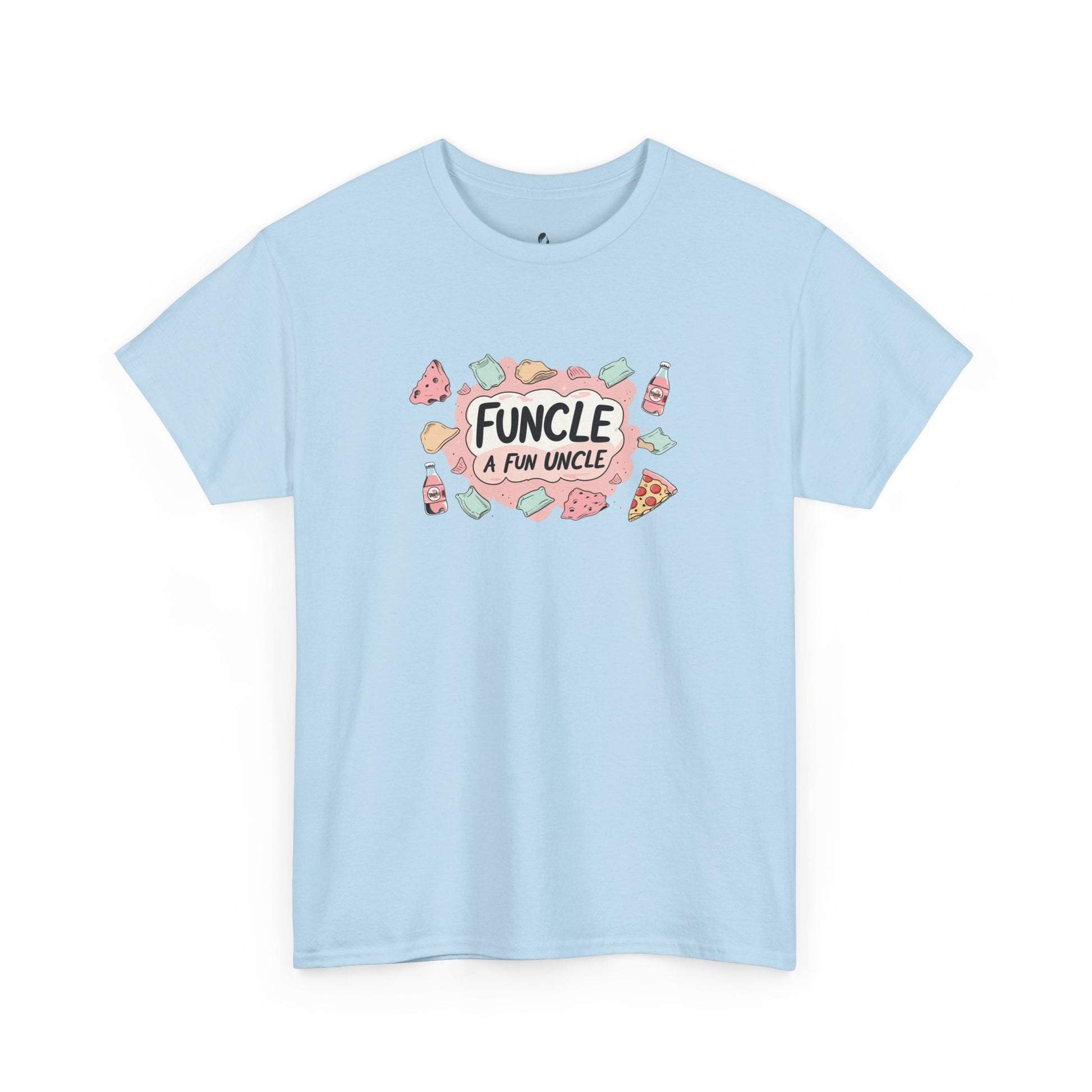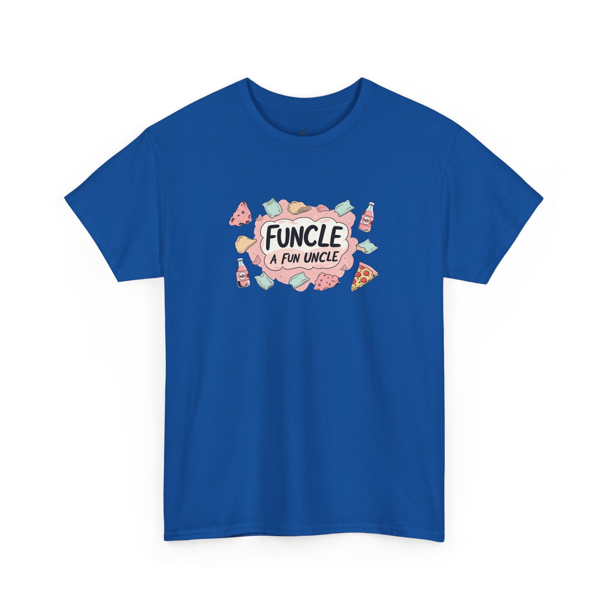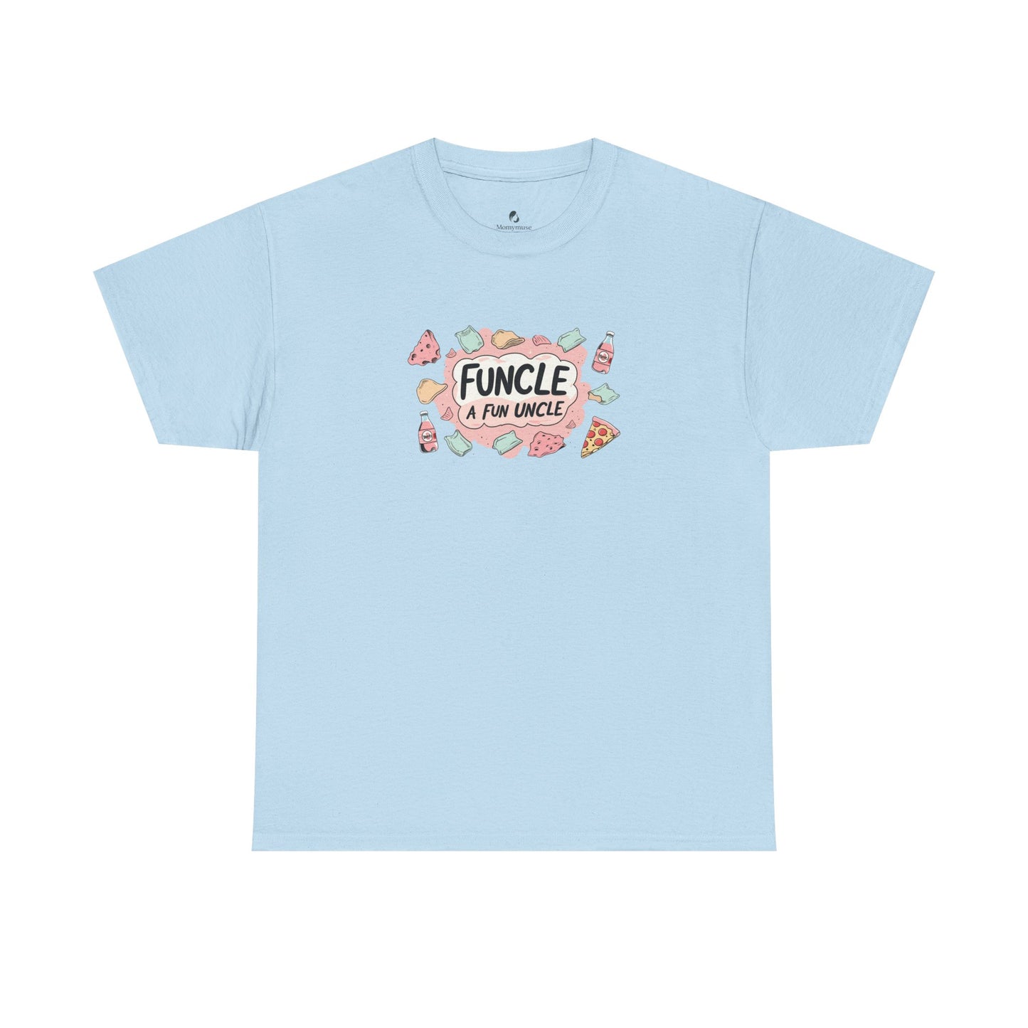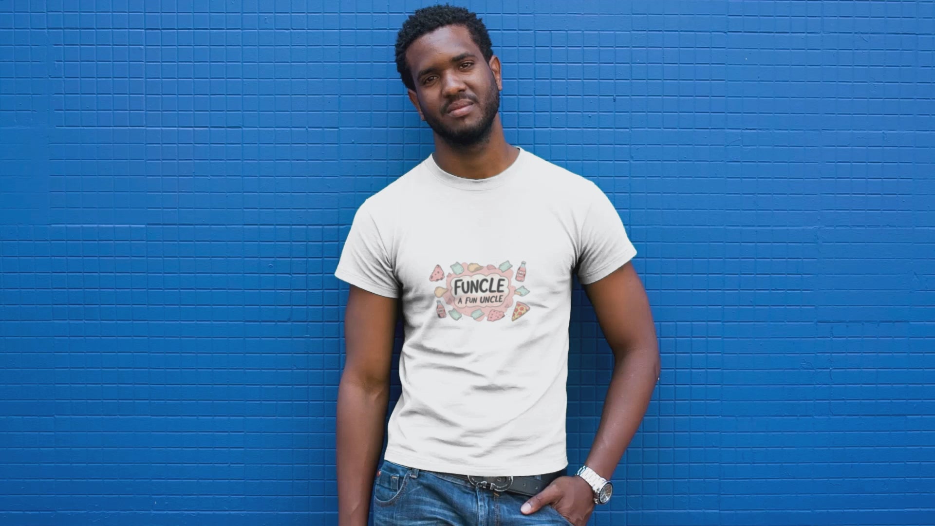 is the perfect gift for uncles to wear at summer parties or family celebrations. It's a cute and fun shirt that can also be a birthday gift idea or a baby shower present. The classic fit and medium fabric make it comfortable for year-round wear, while the ethically grown and harvested US cotton ensures quality and sustainability. This tee is relevant for family gatherings, birthdays, baby showers, and casual outings, targeting adult buyers.