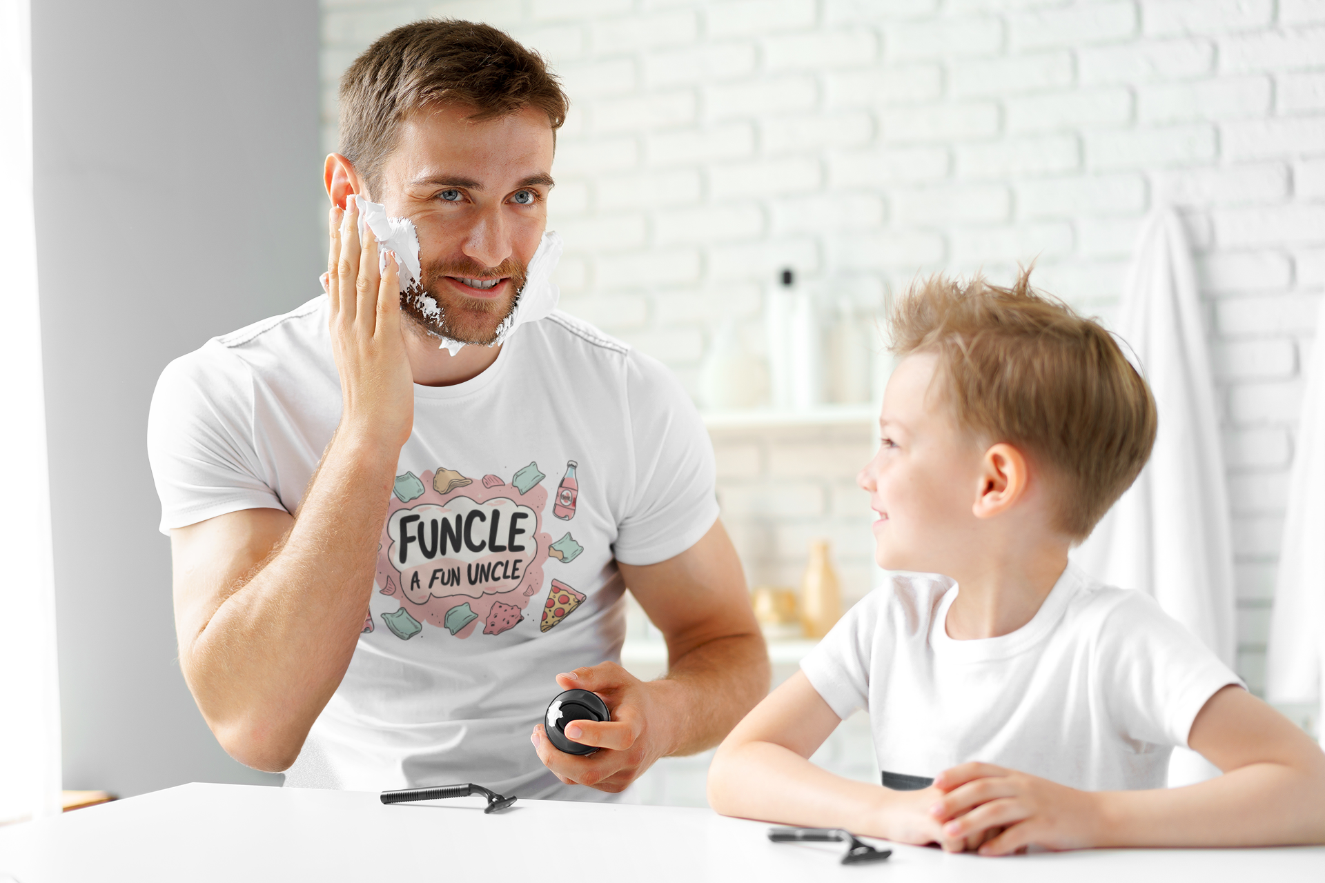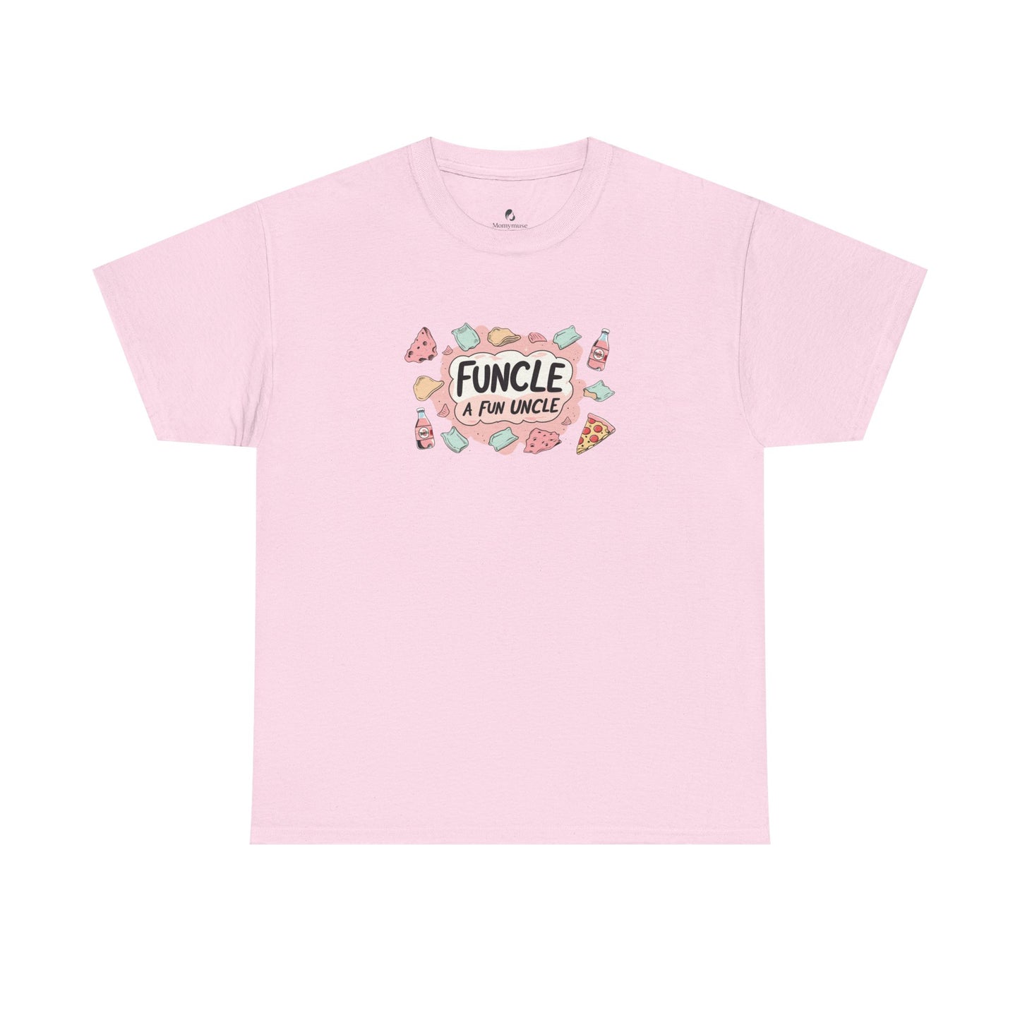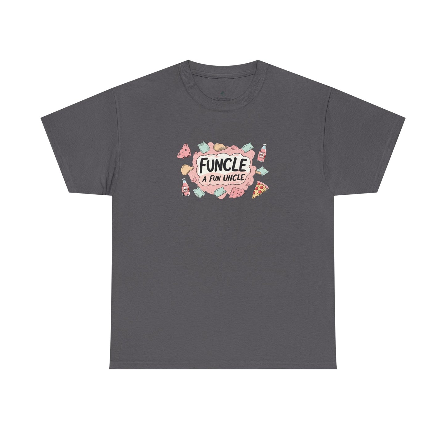is the perfect gift for uncles to wear at summer parties or family celebrations. It's a cute and fun shirt that can also be a birthday gift idea or a baby shower present. The classic fit and medium fabric make it comfortable for year-round wear, while the ethically grown and harvested US cotton ensures quality and sustainability. This tee is relevant for family gatherings, birthdays, baby showers, and casual outings, targeting adult buyers.