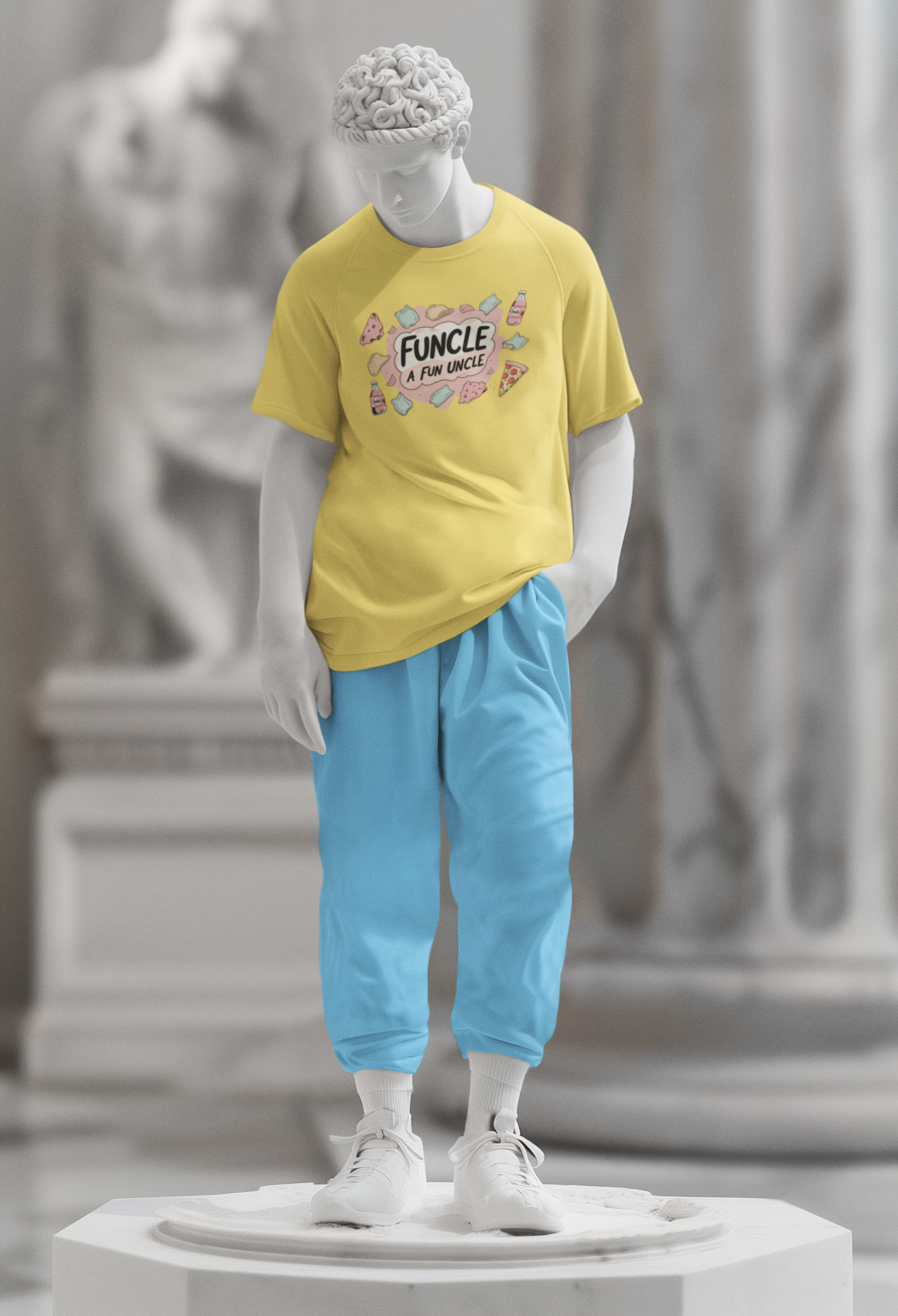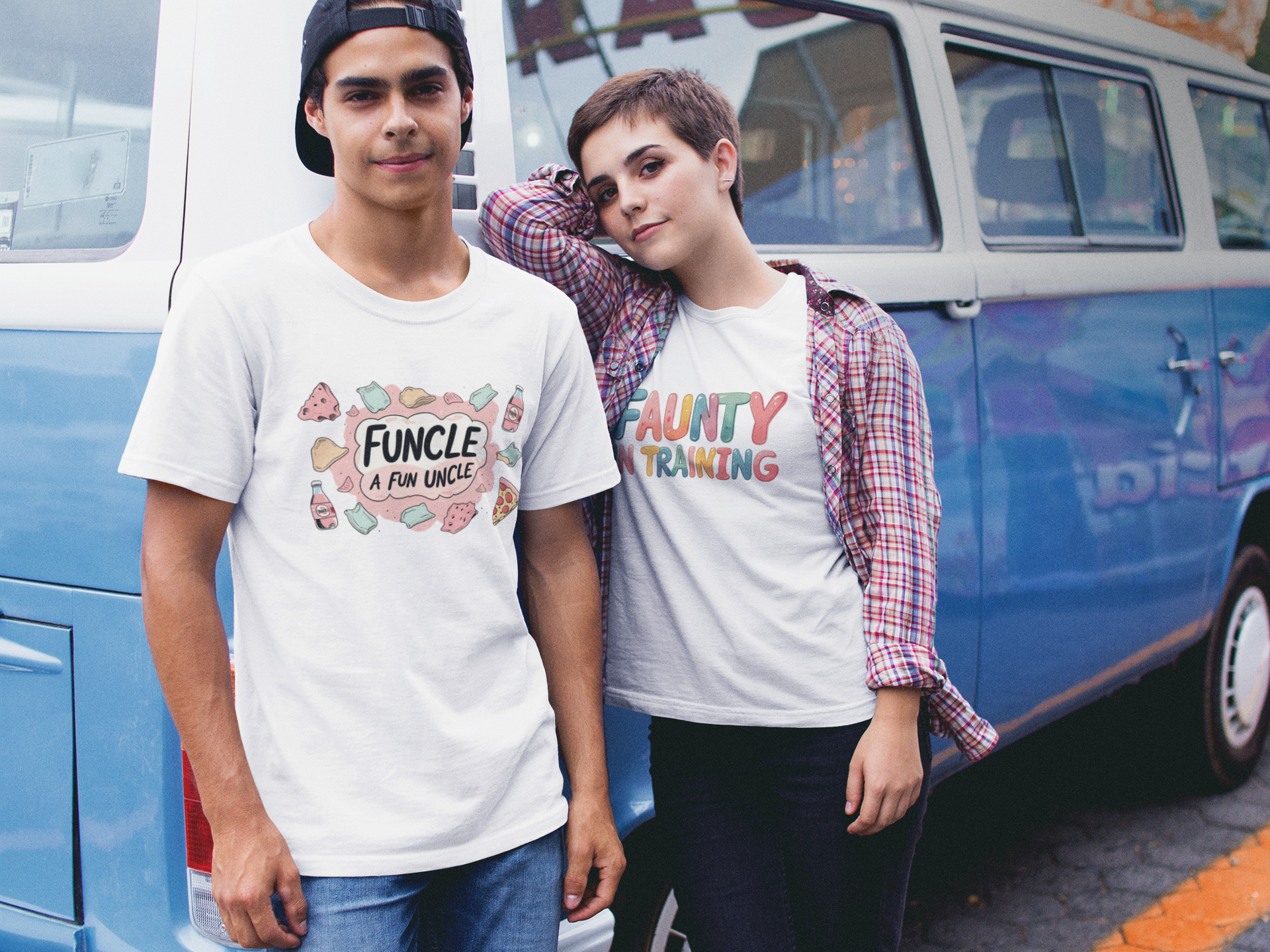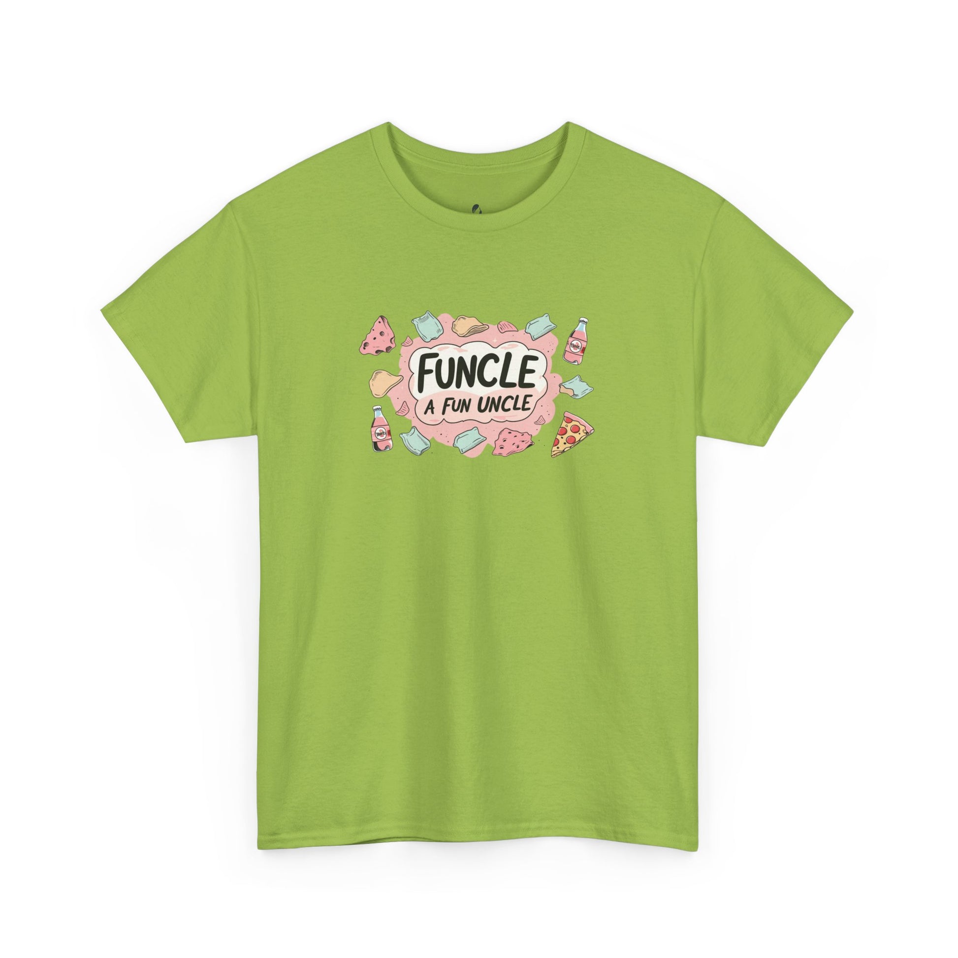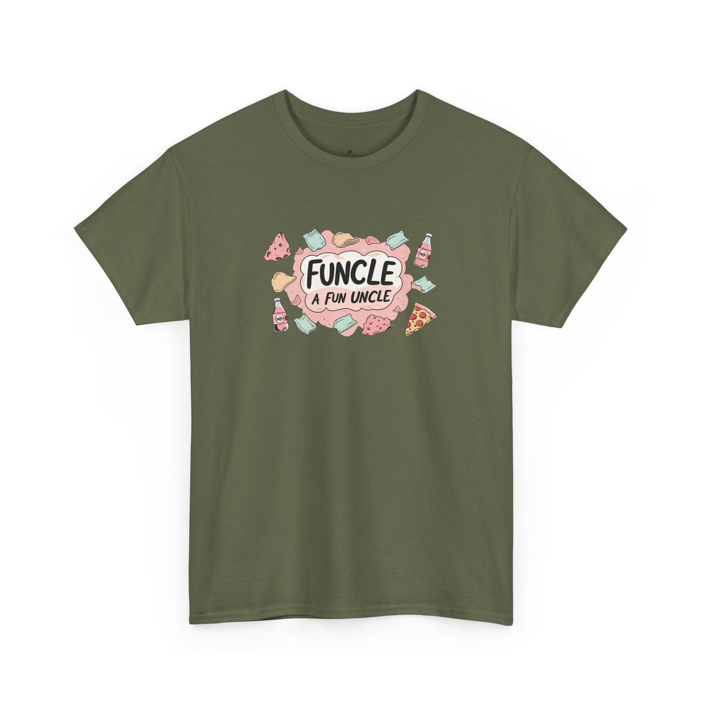 is the perfect gift for uncles to wear at summer parties or family celebrations. It's a cute and fun shirt that can also be a birthday gift idea or a baby shower present. The classic fit and medium fabric make it comfortable for year-round wear, while the ethically grown and harvested US cotton ensures quality and sustainability. This tee is relevant for family gatherings, birthdays, baby showers, and casual outings, targeting adult buyers.