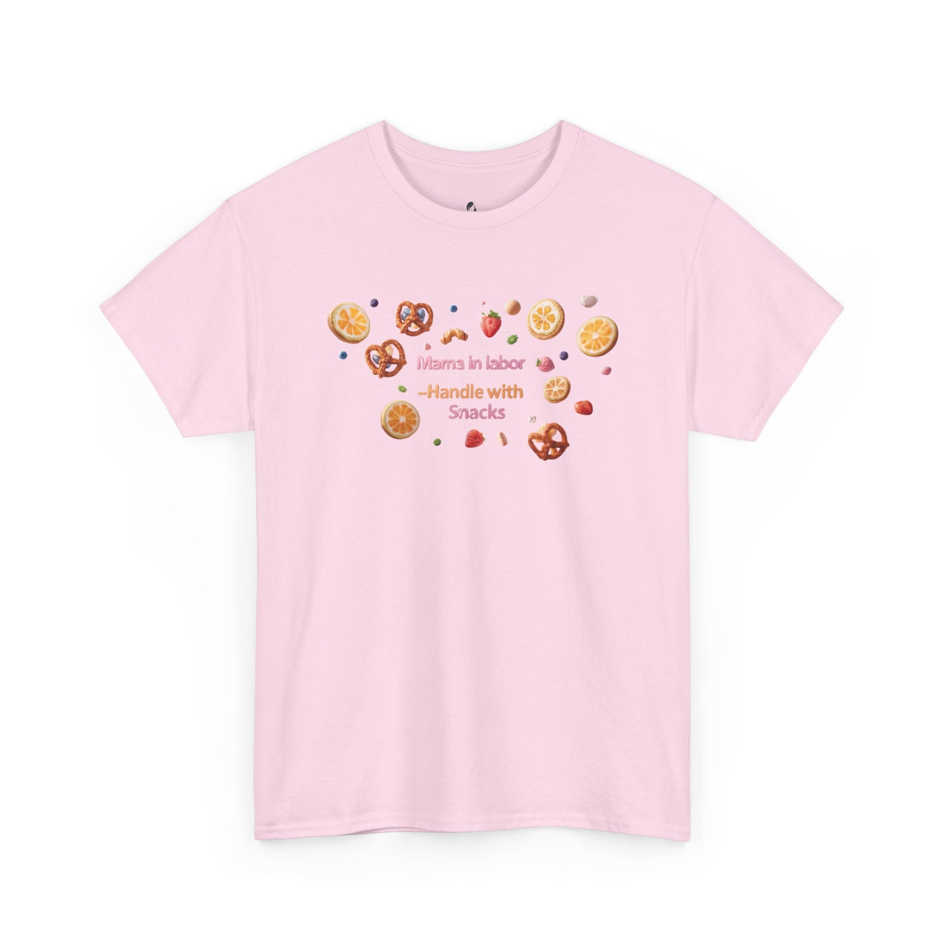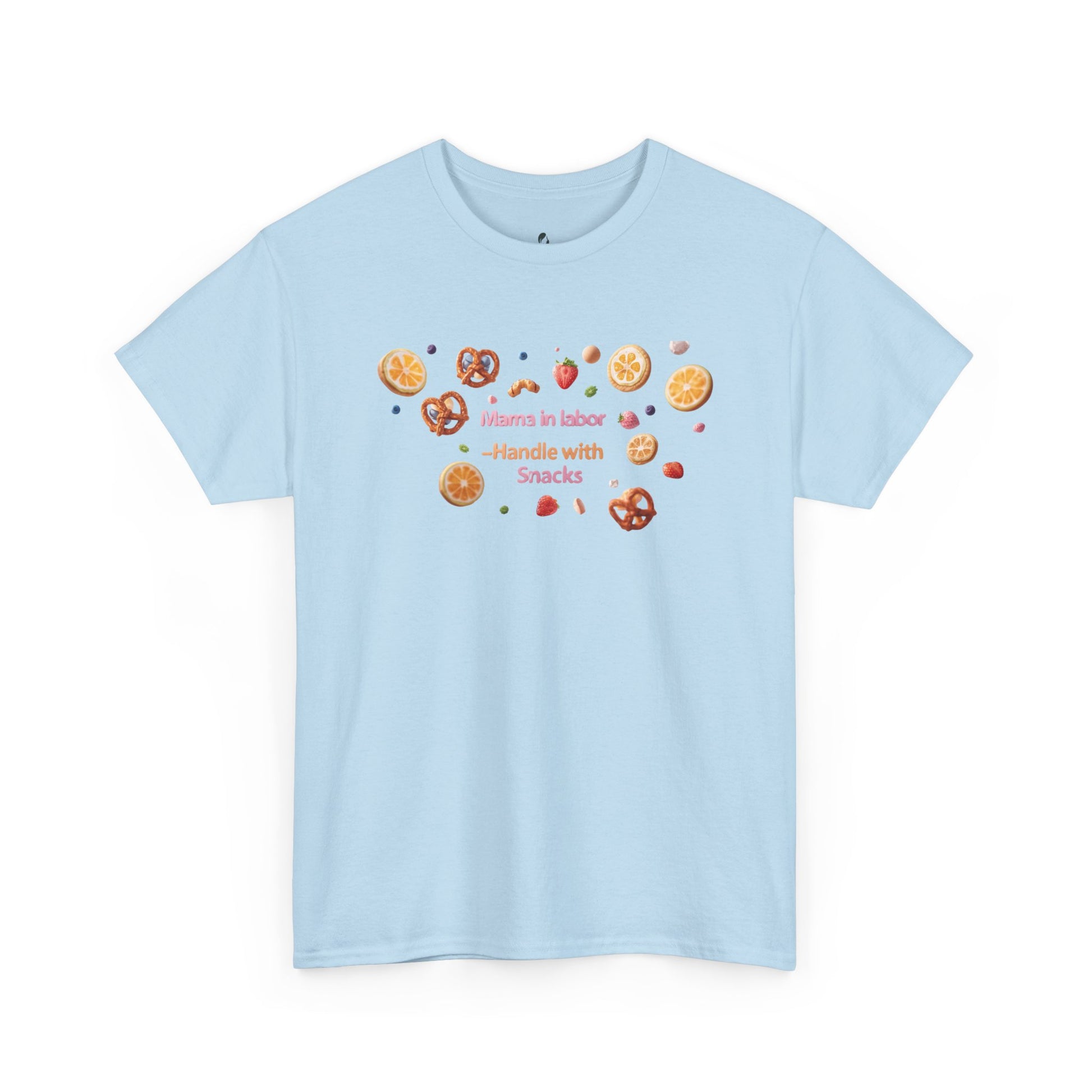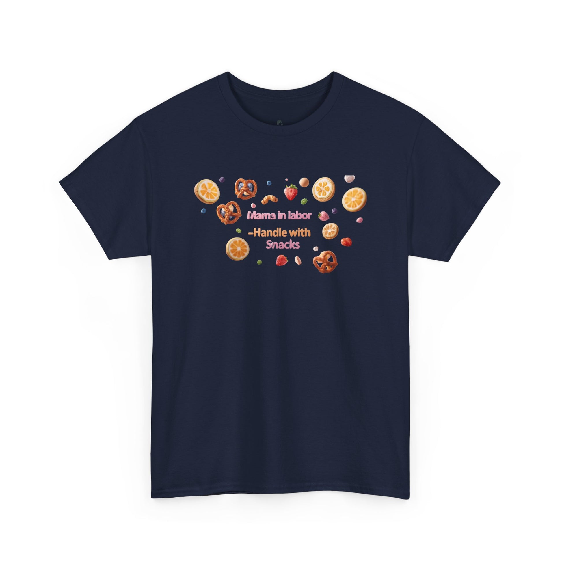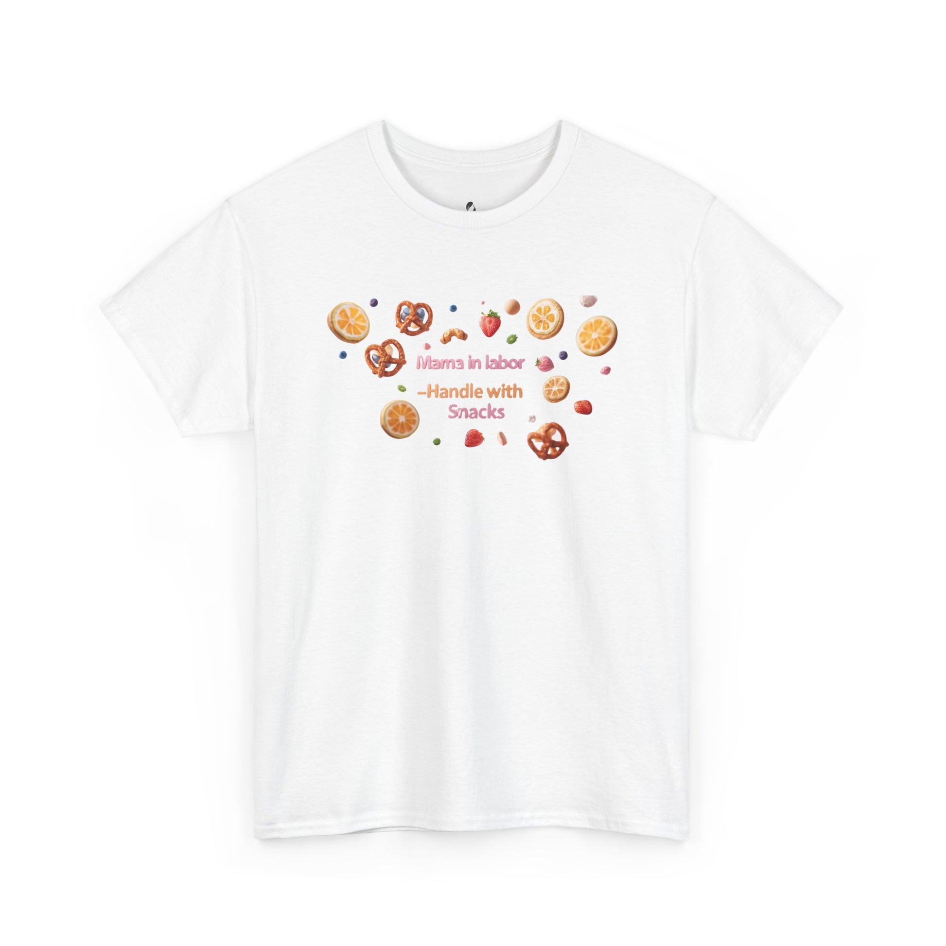 Fun and casual Mama in Labor Handle with Snack maternaty T-Shirt for foodies mama and snack lovers. Perfect for everyday comfort and a relaxed look. Ideal gift for those who enjoy a good snack. Relevant for Mother's Day, birthdays, or just for a cozy day at home.
