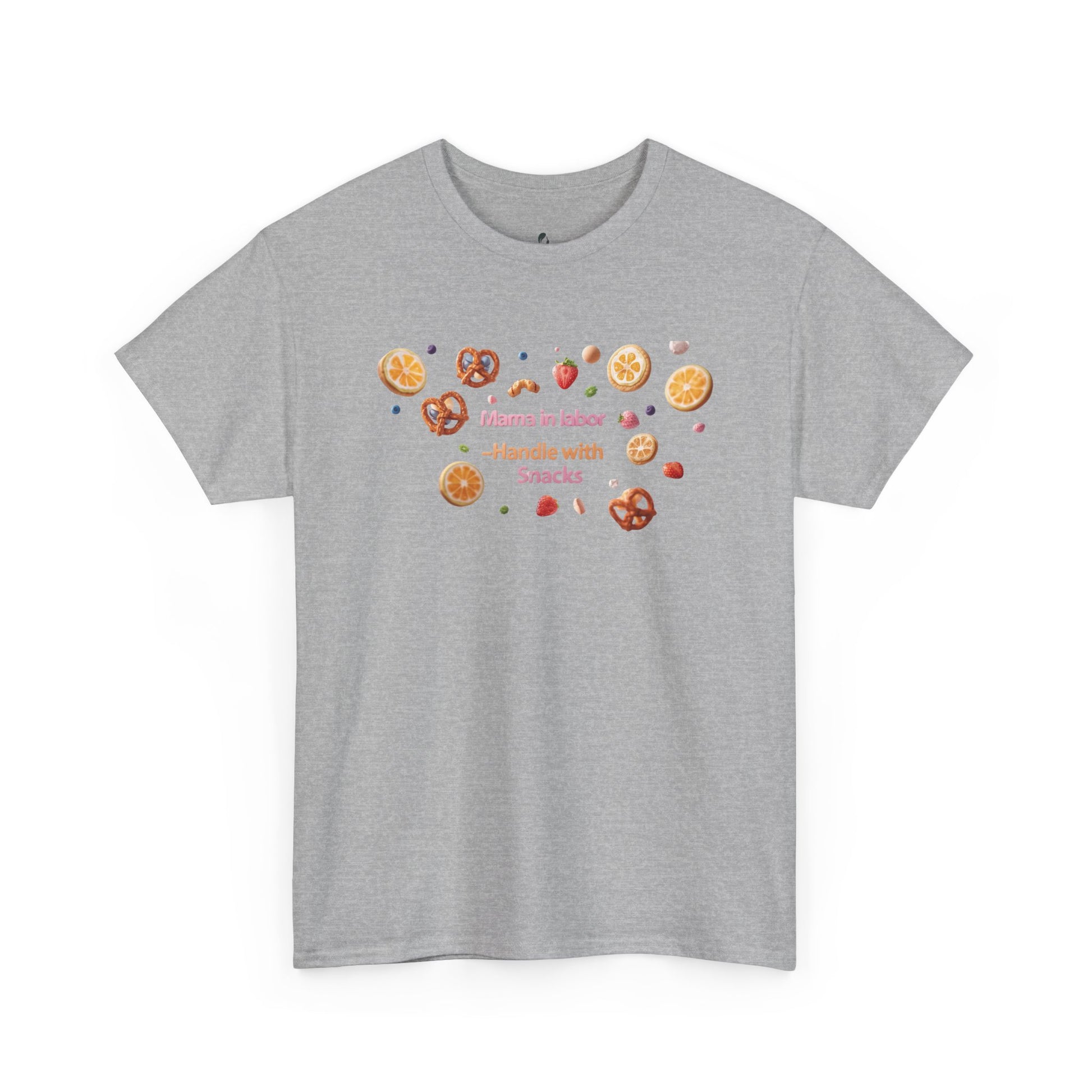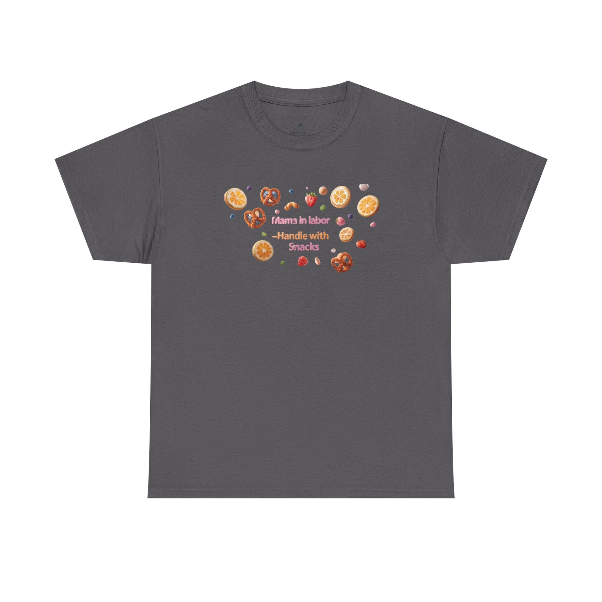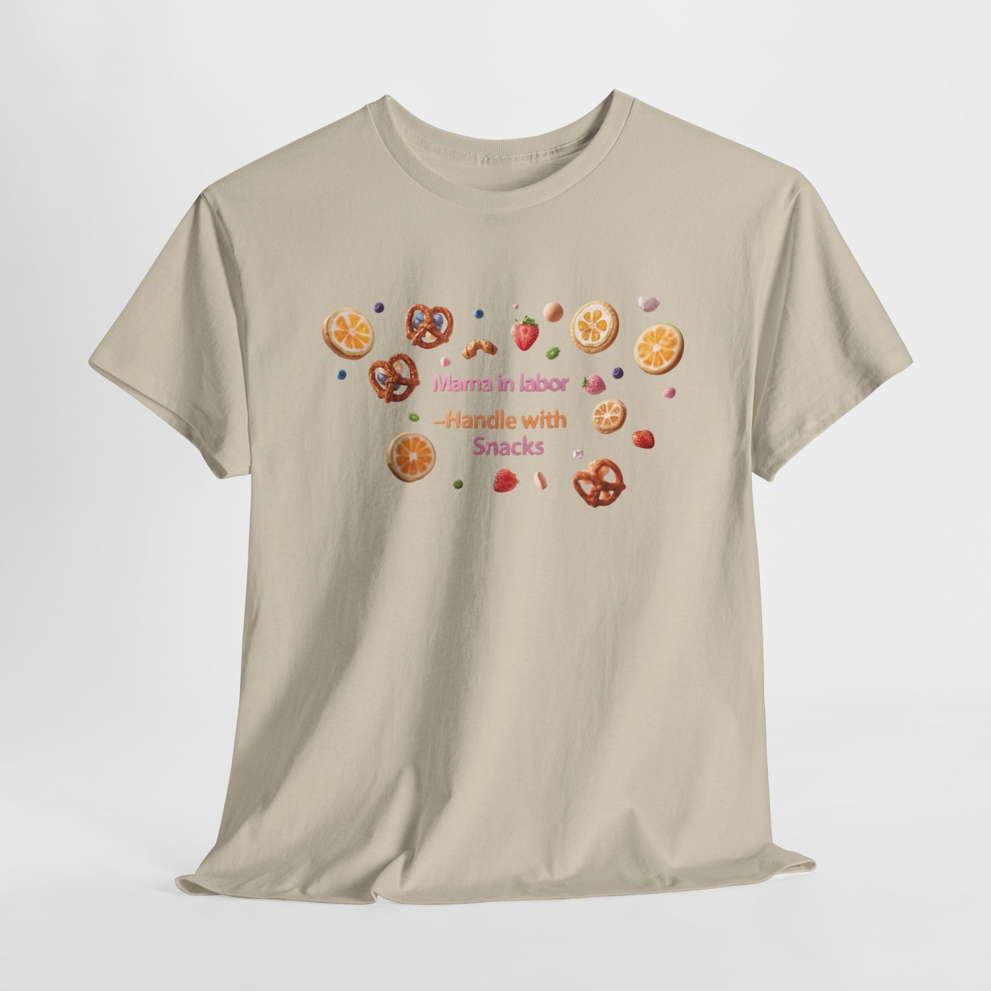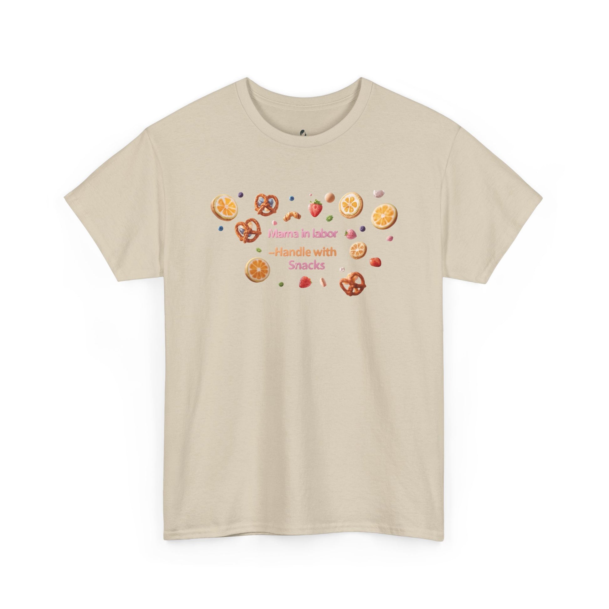 Fun and casual Mama in Labor Handle with Snack maternaty T-Shirt for foodies mama and snack lovers. Perfect for everyday comfort and a relaxed look. Ideal gift for those who enjoy a good snack. Relevant for Mother's Day, birthdays, or just for a cozy day at home.