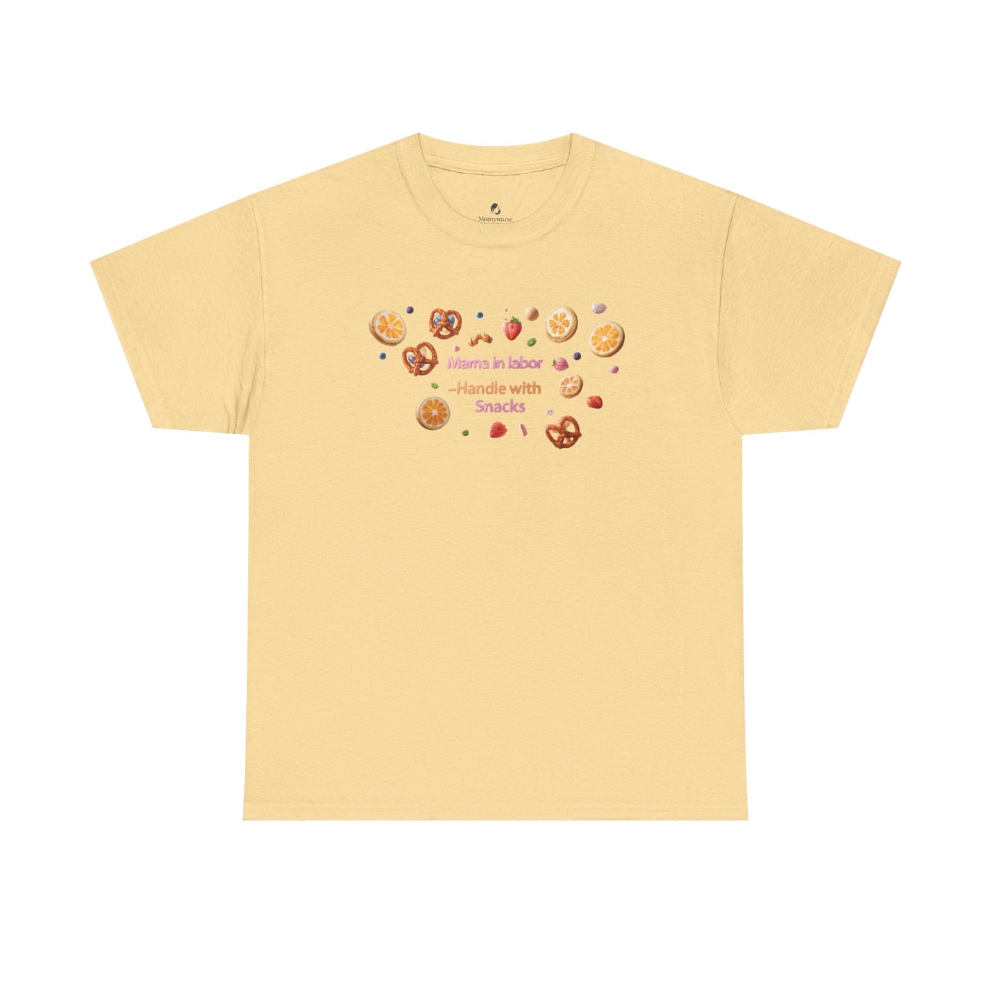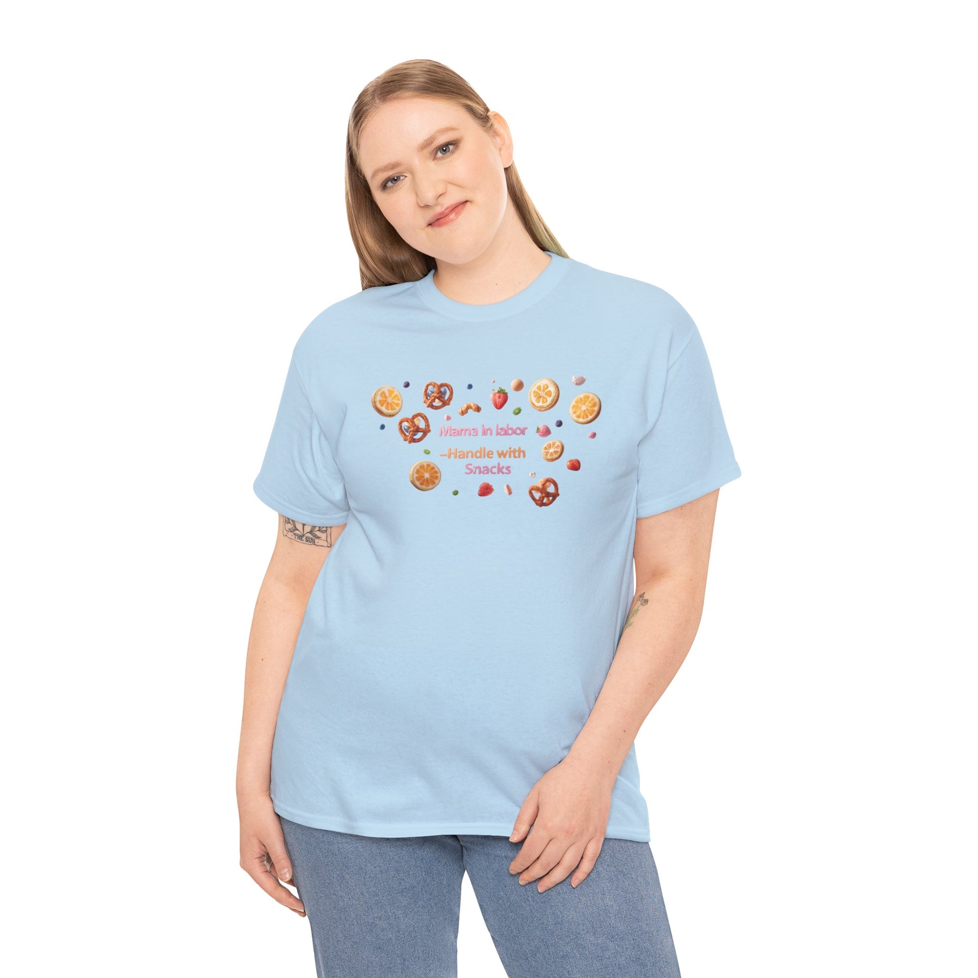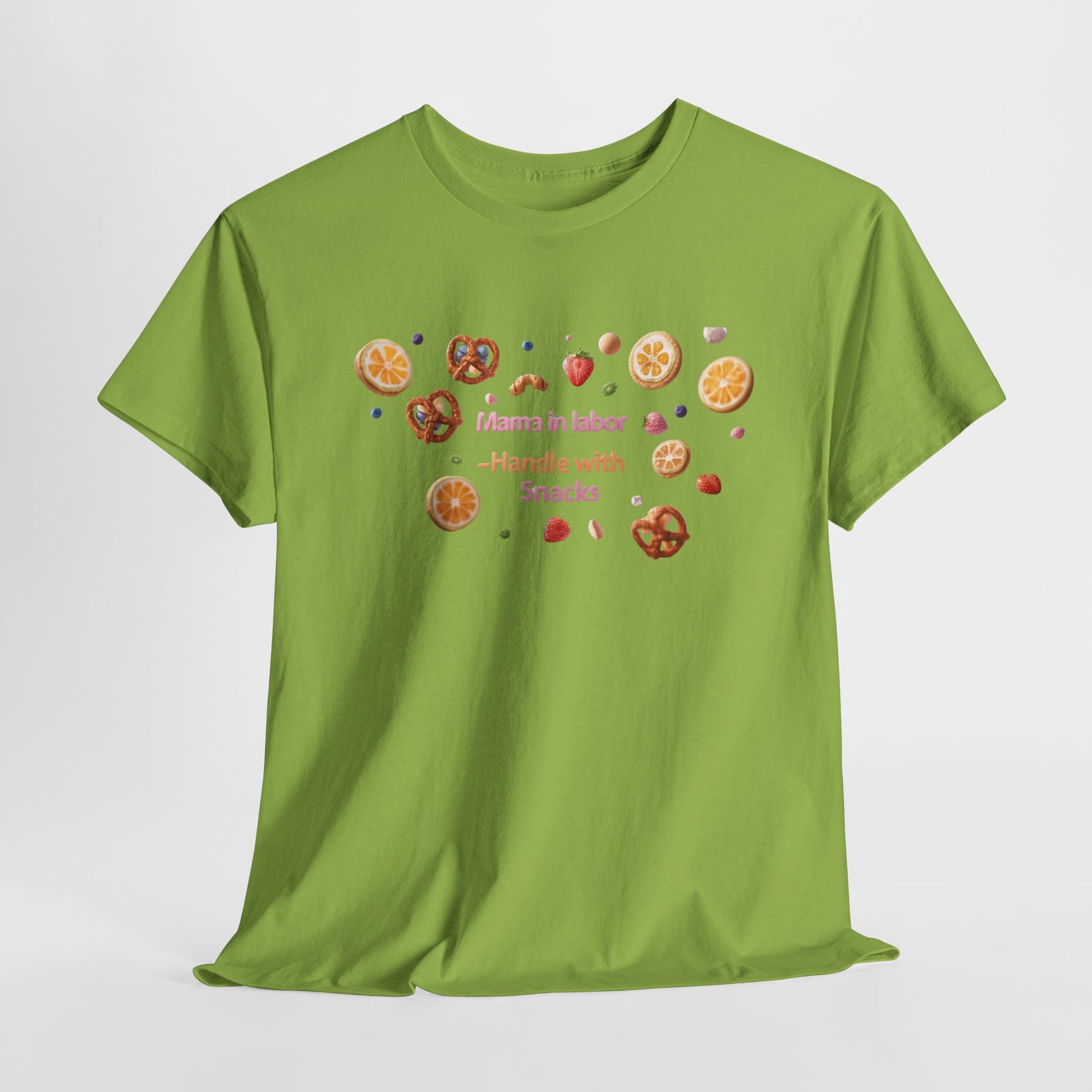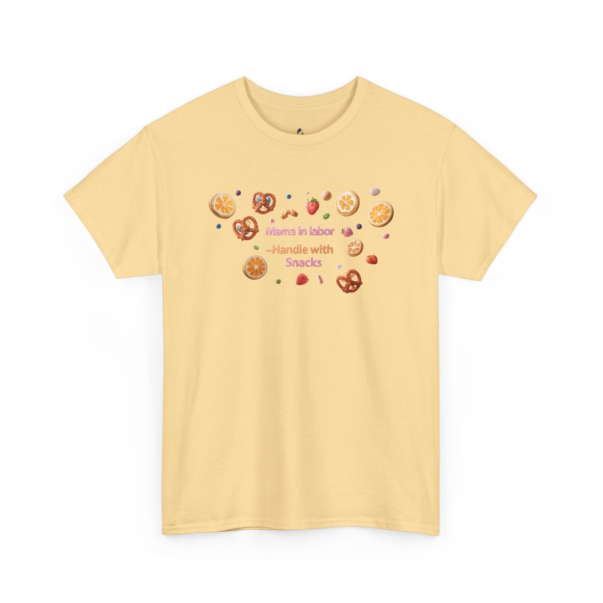 Fun and casual Mama in Labor Handle with Snack maternaty T-Shirt for foodies mama and snack lovers. Perfect for everyday comfort and a relaxed look. Ideal gift for those who enjoy a good snack. Relevant for Mother's Day, birthdays, or just for a cozy day at home.