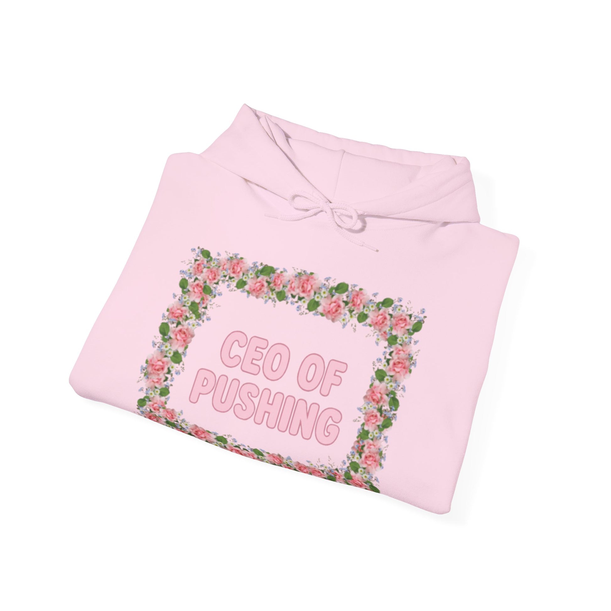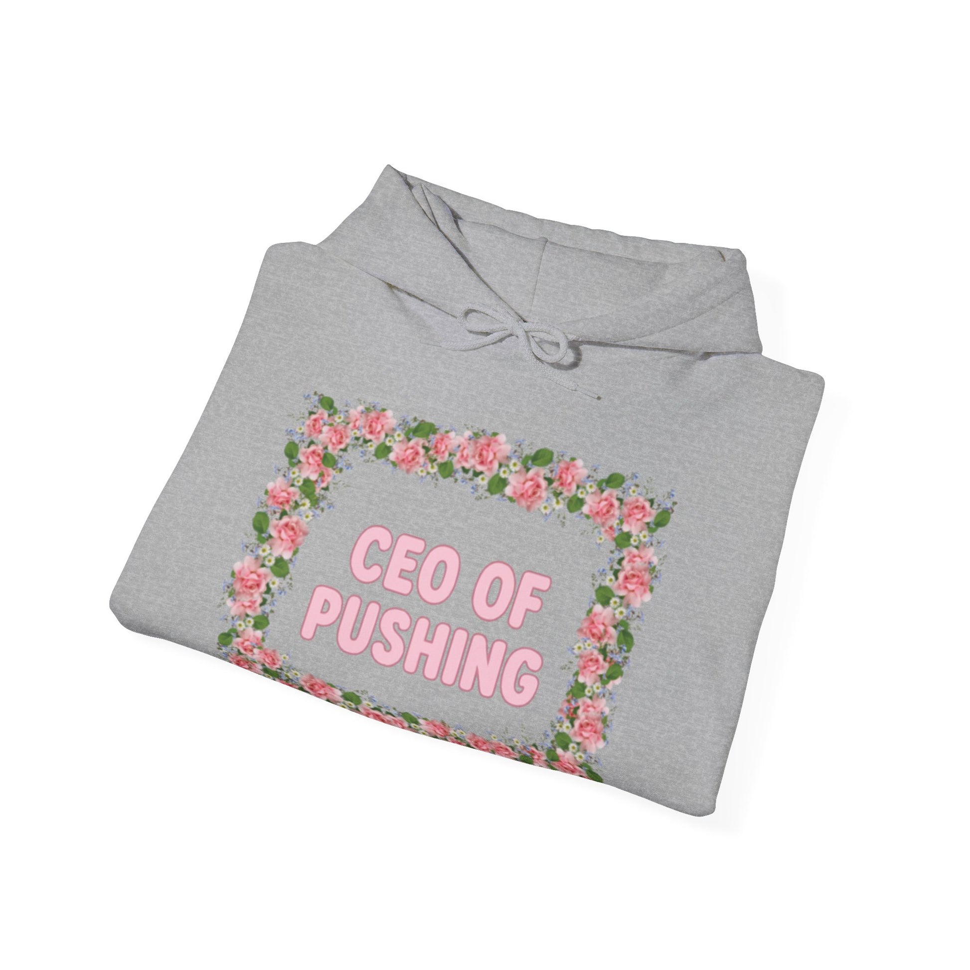 A cozy and stylish unisex hoodie designed for expecting mothers, with a 'CEO OF PUSHING' print. Perfect for moms-to-be who want to stay comfy and make a fun statement during their pregnancy. Ideal for baby showers, maternity photoshoots, and everyday wear.