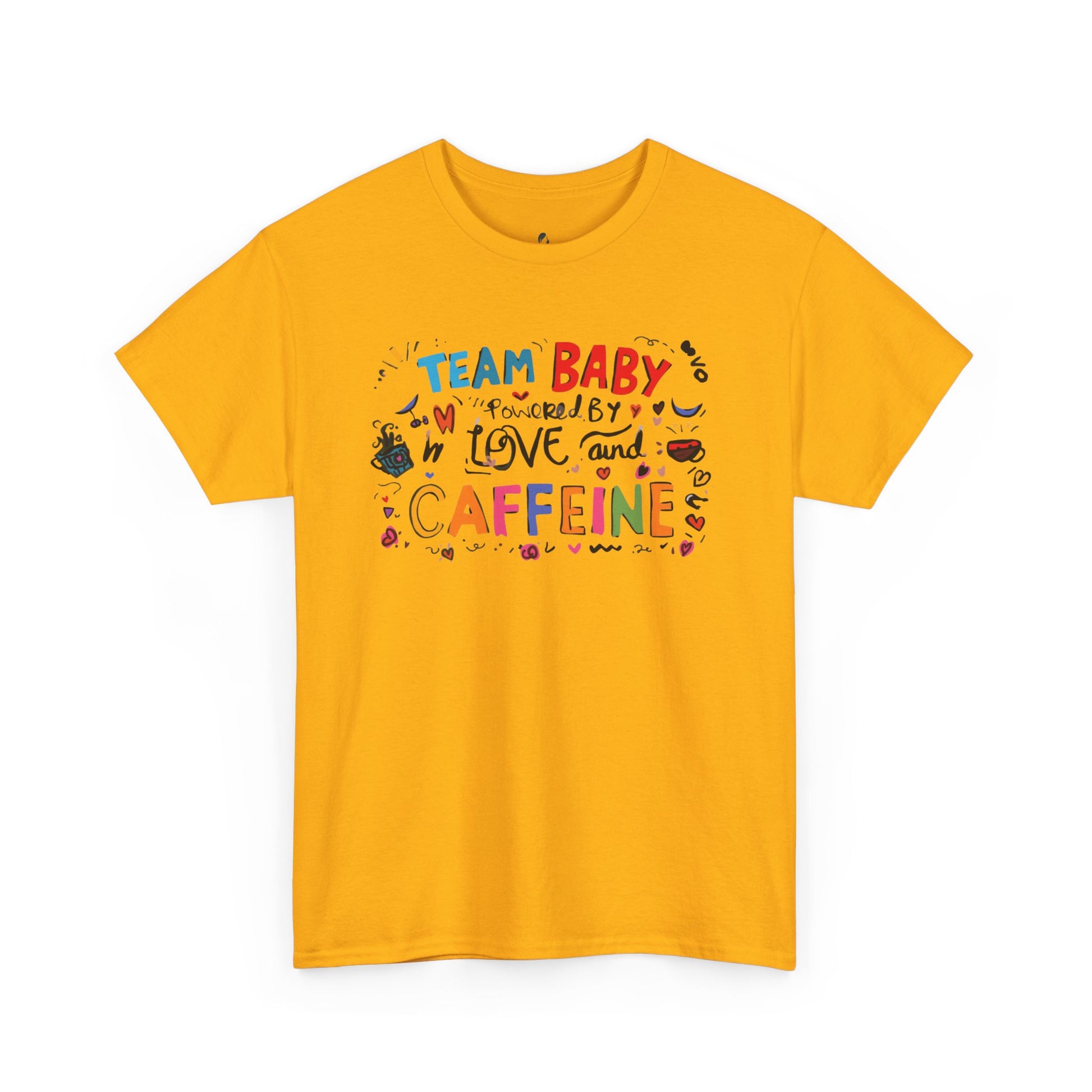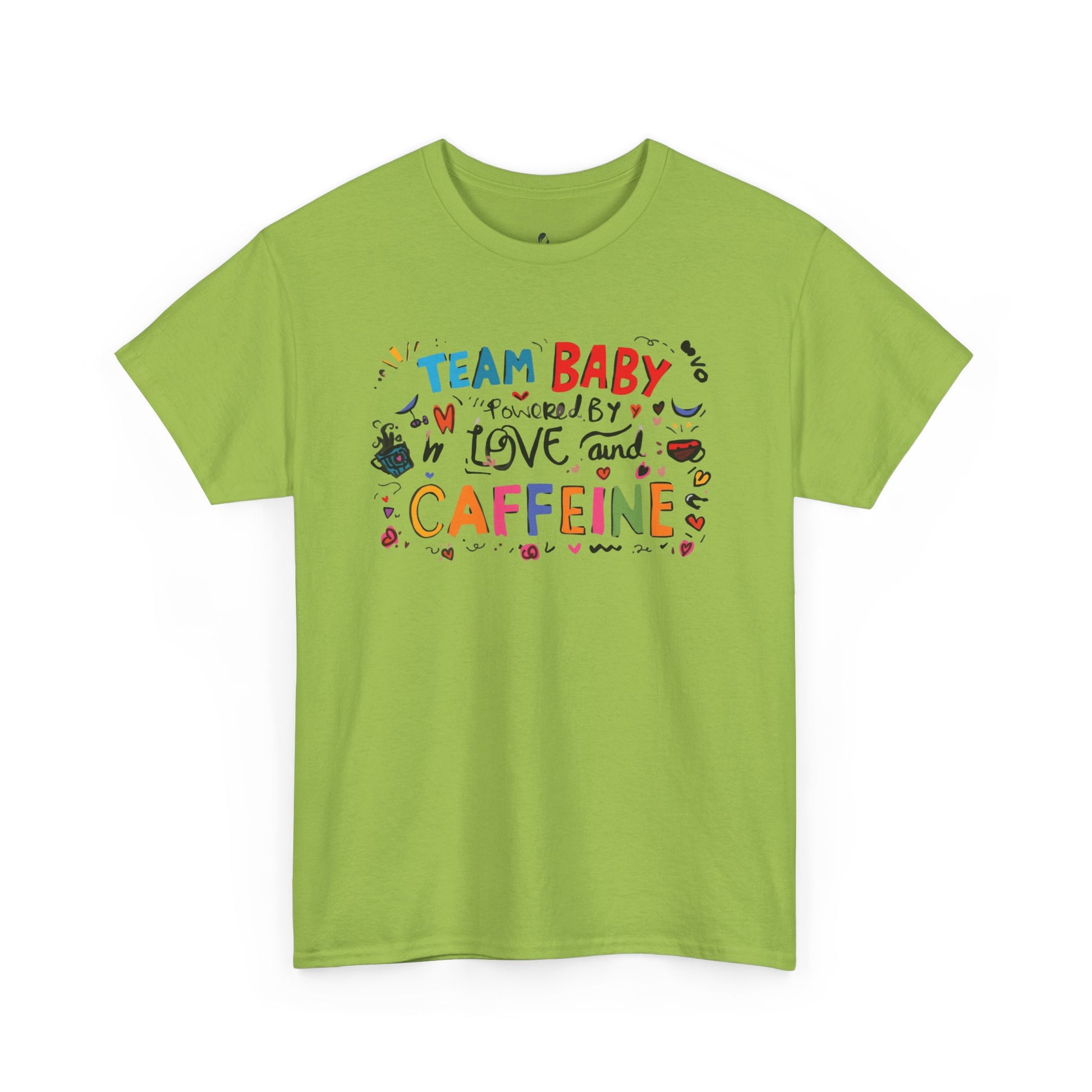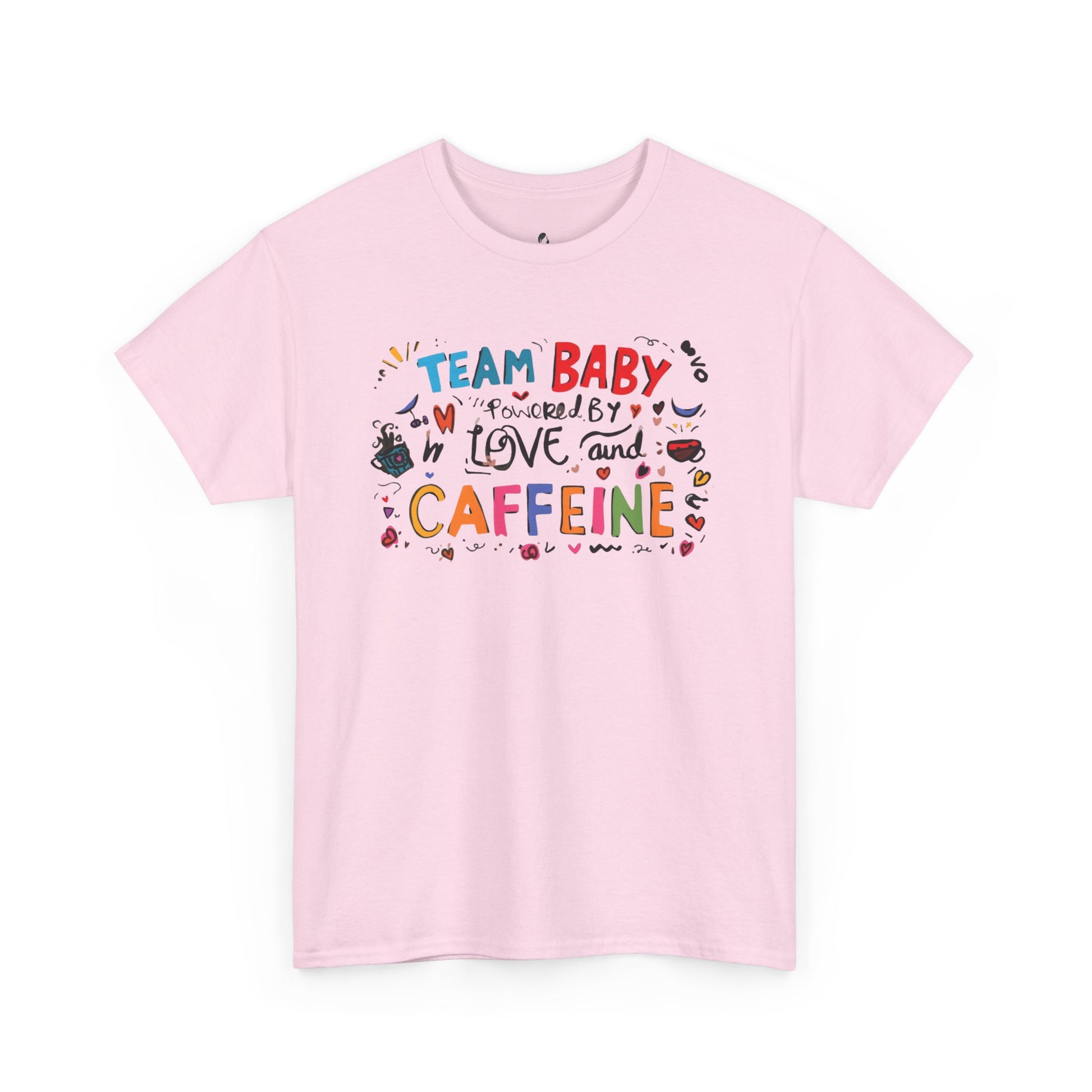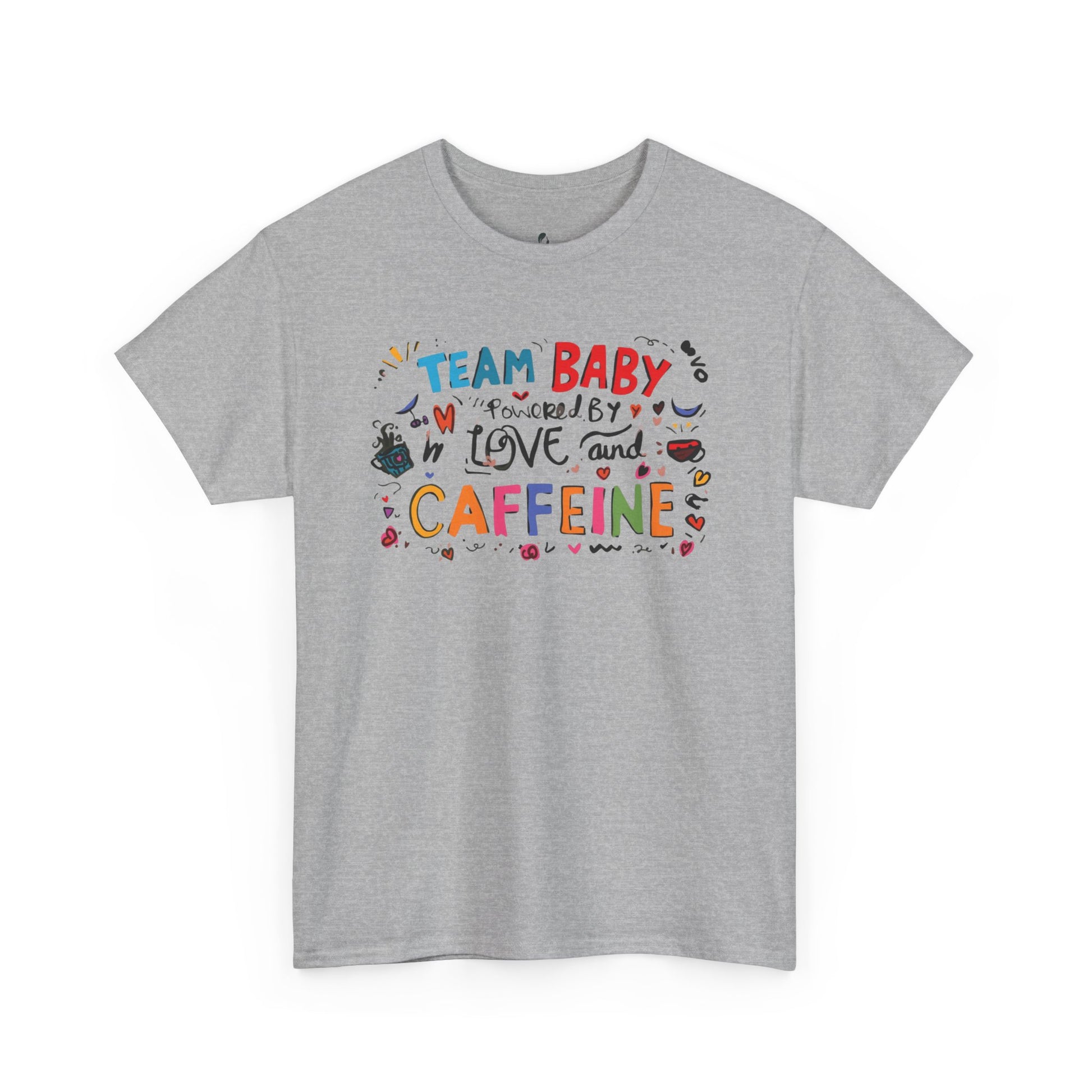 This Unisex Heavy Cotton Tee is perfect for new parents or anyone who loves to celebrate the joys and challenges of parenthood. With its fun and colorful design reading 'TEAM BABY powered by LOVE and CAFFEINE,' this shirt embodies a vibrant atmosphere of love and humor. It's an ideal gift for baby showers, birthday parties, or just to brighten up everyday life. The soft fabric and classic fit make it a go-to choice for casual outings or cozy days at home. Whether you're running errands, enjoying a coffee date, or lounging around, this tee offers both comfort and style, bringing a playful vibe to your wardrobe.