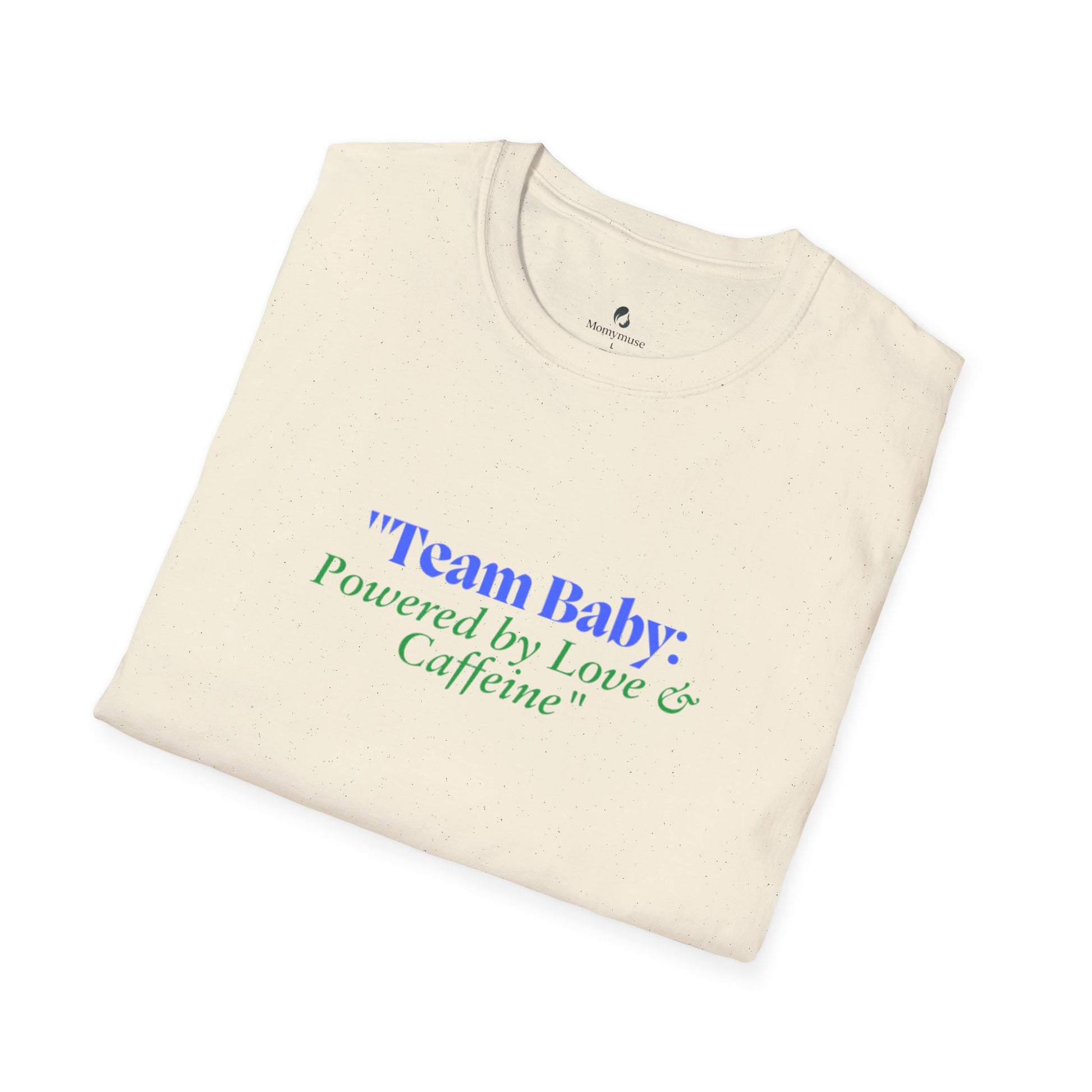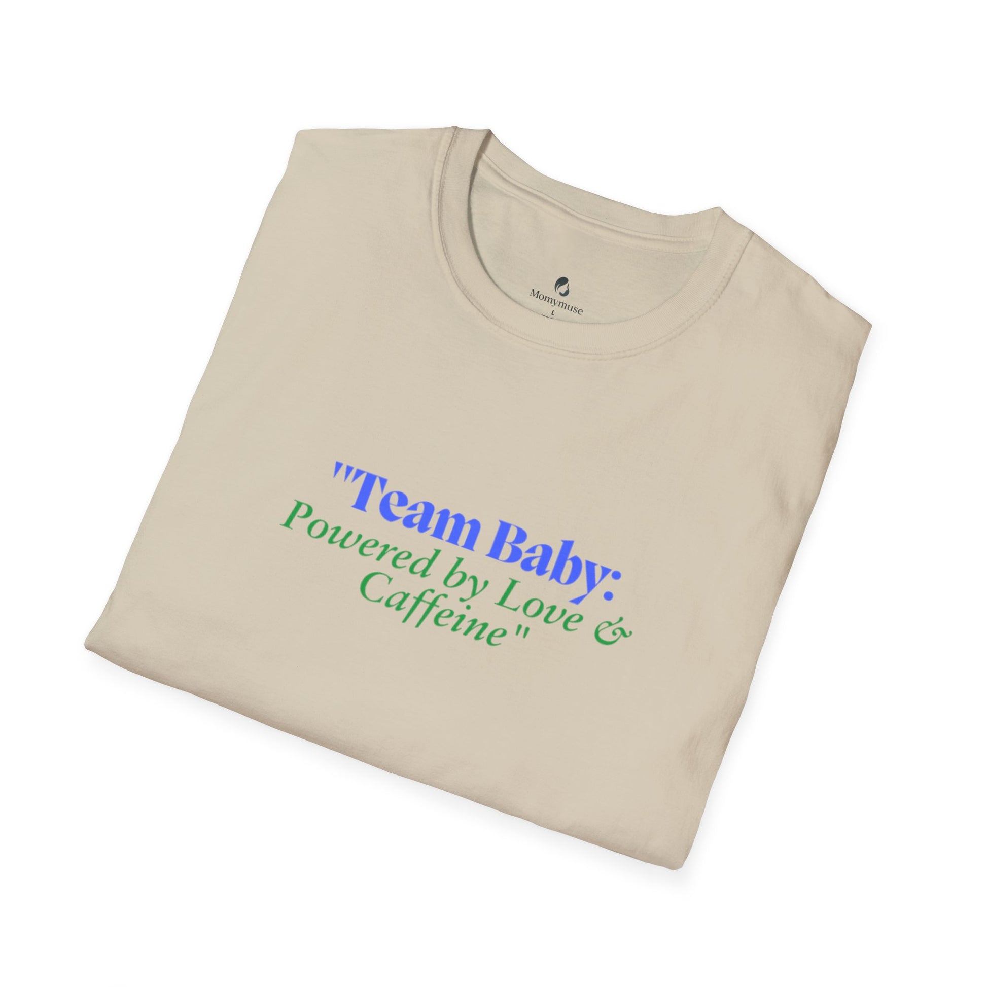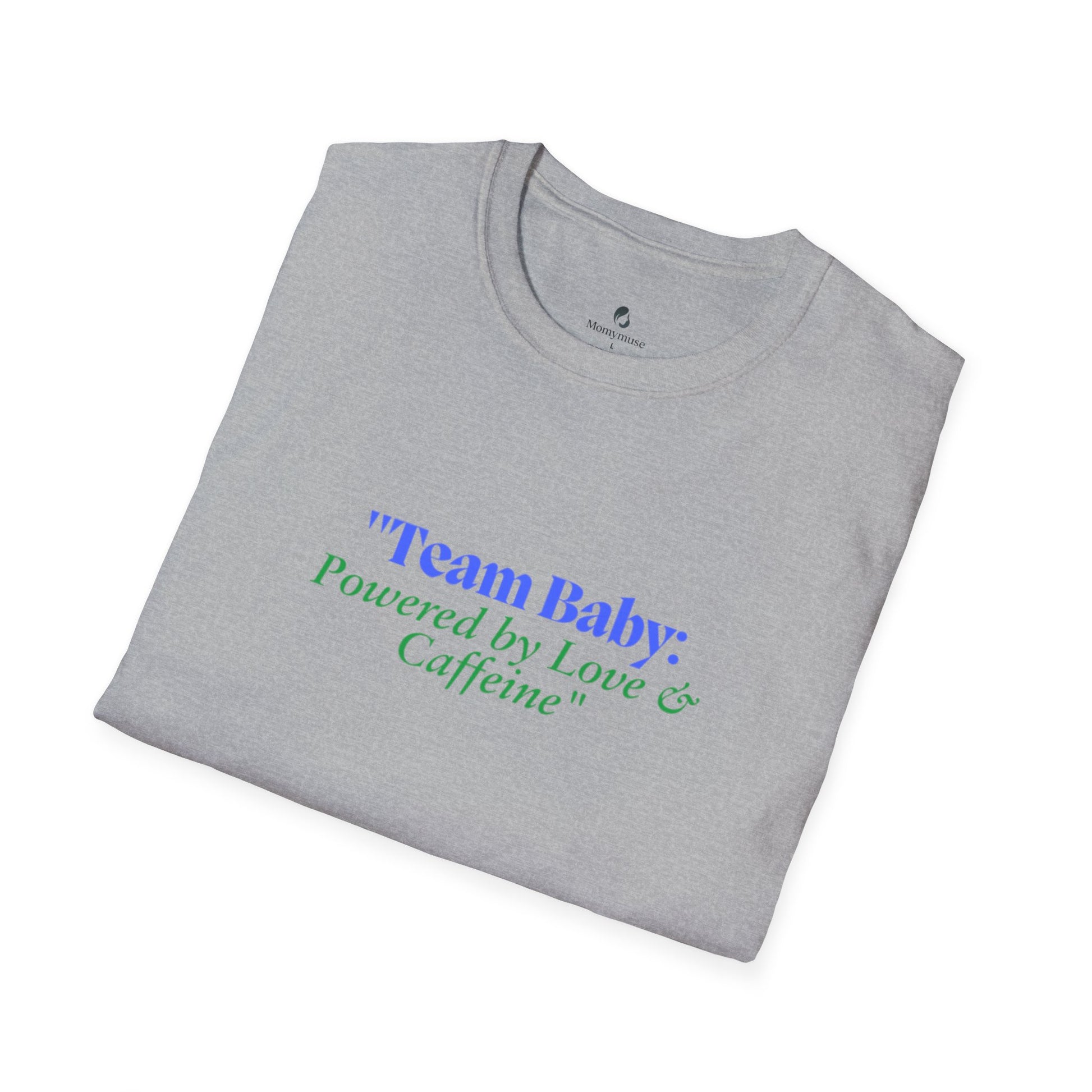 Introducing a versatile Unisex Softstyle T-Shirt that combines comfort and style for everyday wear. Made from 100% ring-spun cotton, this lightweight fabric provides a luxuriously soft feel, ensuring you stay comfortable all day long. The shirt's classic fit and crew neckline make it an easy choice for any occasion—be it casual outings, family gatherings, or even relaxed office environments. Perfect for new parents, it proudly displays the fun phrase "Team Baby: Powered by Love & Caffeine," making it an ideal gift for Baby Showers or new parent celebrations. Celebrate milestones, share joy, and create connections with this unique tee that’s bound to spark conversations. Wear it year-round with confidence and ease!