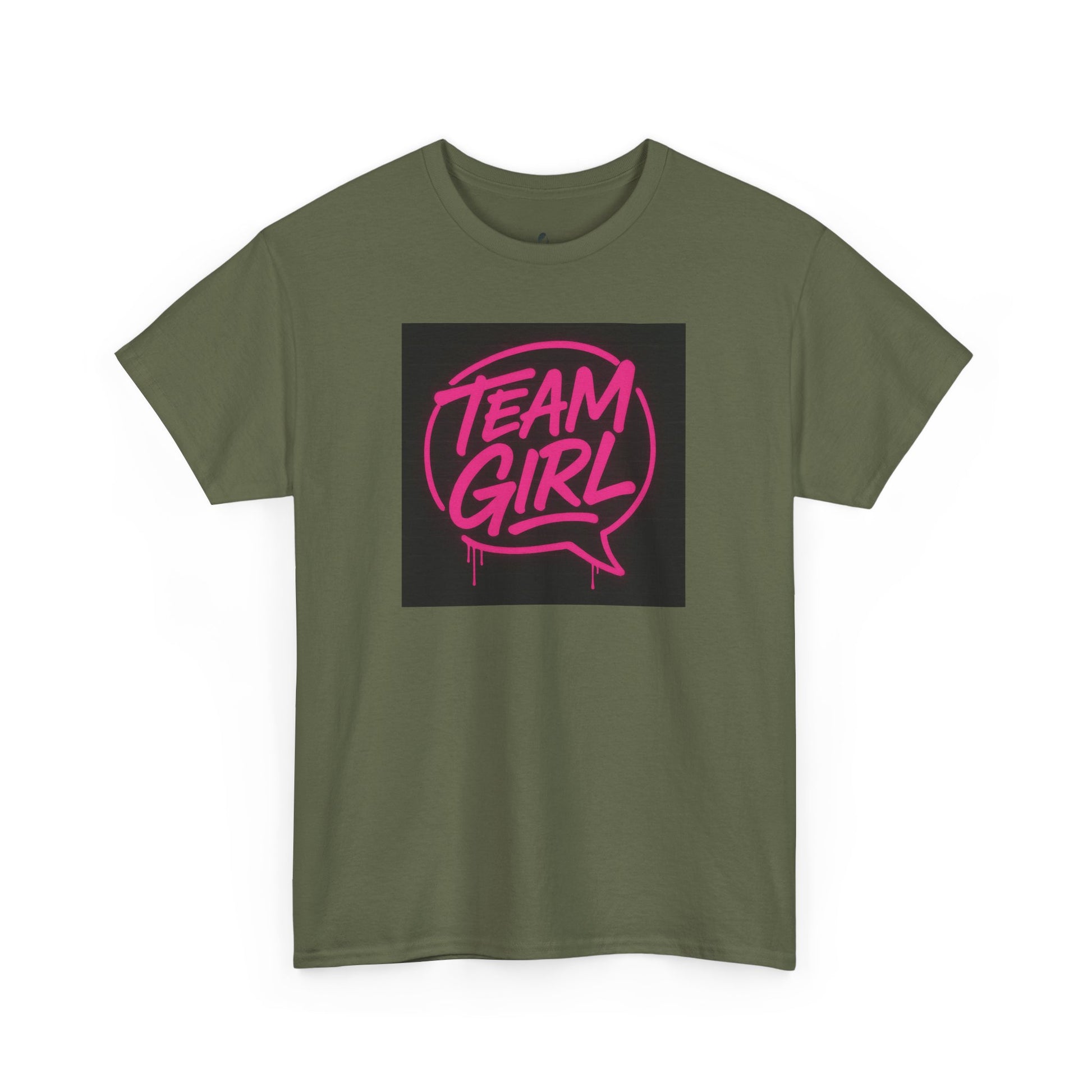 Elevate your casual wardrobe with this Unisex Heavy Cotton Tee! Designed for both comfort and style, this tee features a modern fit that complements every body type. Perfect for everyday wear, it offers a relaxed vibe that's ideal for lounging at home or adventures with friends. The vibrant 'TEAM GIRL' print makes a bold statement, celebrating empowerment and camaraderie among every woman. Suitable for various occasions, whether it's a casual day out, sports events, or themed gatherings, this tee will effortlessly fit into your lifestyle. Celebrate birthdays, friendship days, or simply treat yourself or a loved one to this versatile and comfortable addition to your wardrobe.