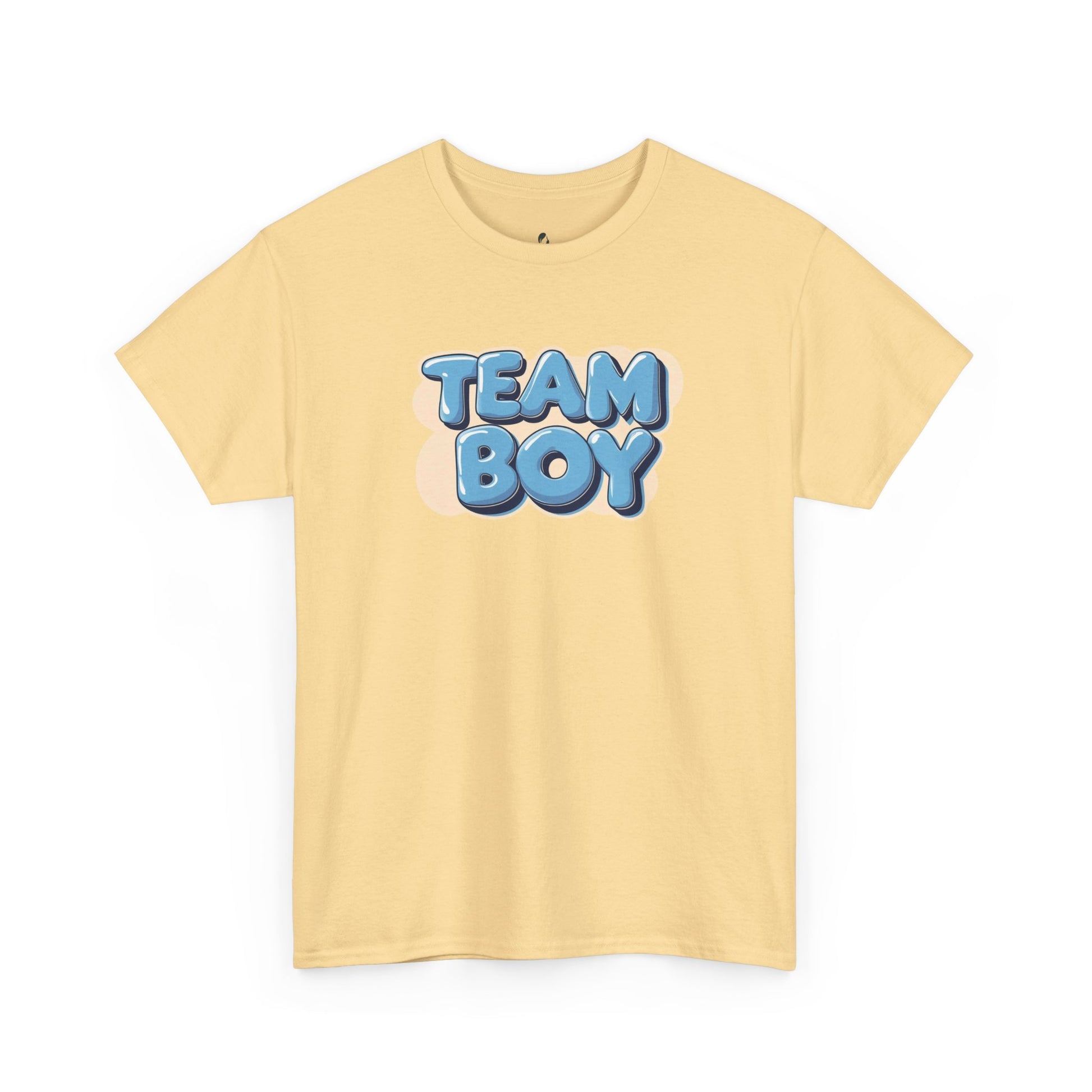 Embrace your playful spirit with this Unisex Heavy Cotton Tee. Featuring a vibrant "TEAM BOY" design, this tee radiates positivity and fun, making it perfect for casual outings or gatherings with friends. Its classic fit ensures that you can move freely while looking effortlessly stylish. Designed for everyone, it's an ideal pick for parents, families, and friends celebrating new arrivals or special milestones. This shirt is perfect for birthdays, baby showers, and gender reveal parties, capturing the excitement of celebrating life's joyous moments. Wear it proudly and spread the enthusiasm wherever you go!