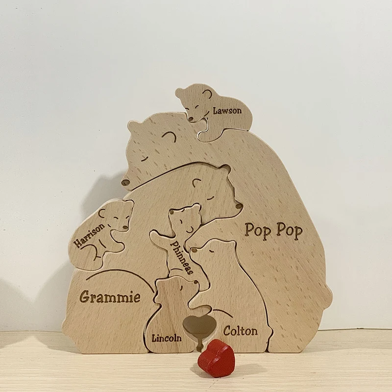 Celebrate family bonds with the Wooden Bear Hug Personalised Bear Family Wood Carving. Crafted with precision, this wooden bear family puzzle features customizable names, making it a heartfelt keepsake. Its intricate design showcases a hugging bear family, symbolizing unity and love. Perfect for display or as a meaningful gift, this wood carving offers a timeless way to honor your loved ones with expert craftsmanship.
